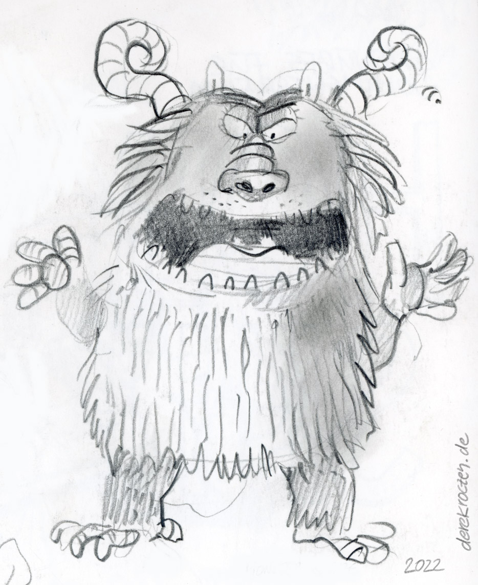 Deine Eltern 2 illustration Deine Eltern…. Eine Arbeit für meine Mappe, nach einem Text von Anne Ameling A second version, with a more conventional background and some additional monsters….. this was based on this sketch, which I drew in my notebook while having lunch with Anne: Sketch für deine Eltern And one of the Monsters: