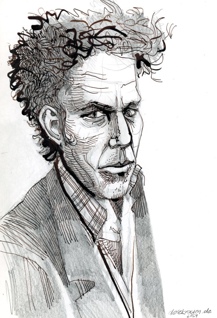 Bruno sketch, Uncategorized Practicing portrait drawing. Ink and white acrylic paint on paper. From my sketchbook.